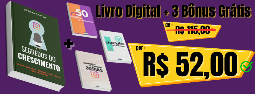 Já imaginou ter um Instagram vibrante, cheio de seguidores engajados que realmente se importam com o que você posta? O Segredos do Crescimento não é apenas um livro digital, é o caminho para transformar sua presença online de forma autêntica, sem truques ou atalhos duvidosos. Aqui, você vai descobrir como se conectar de verdade com seu público, criar conteúdos que impactam e fazer do Instagram uma plataforma que impulsiona seus sonhos e objetivos. Se você sente que está postando sem rumo e quer finalmente ver resultados, este livro digital é para você.